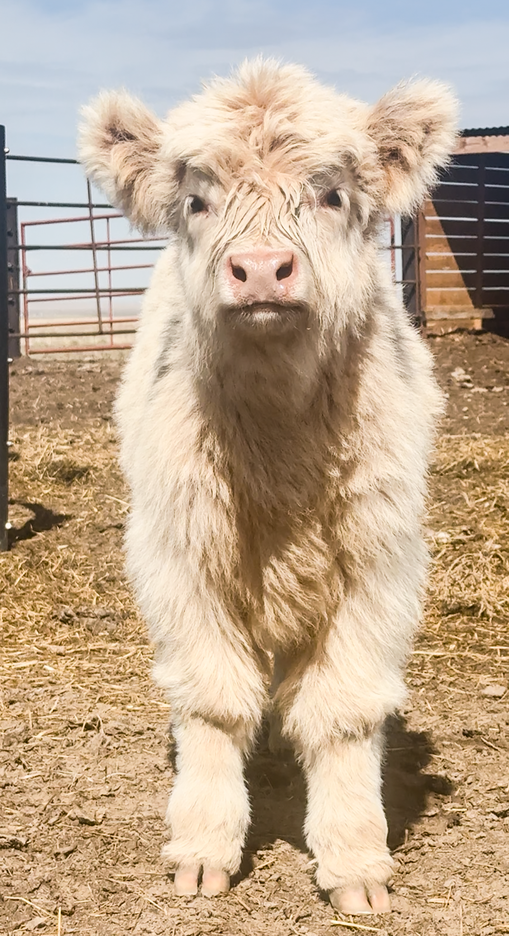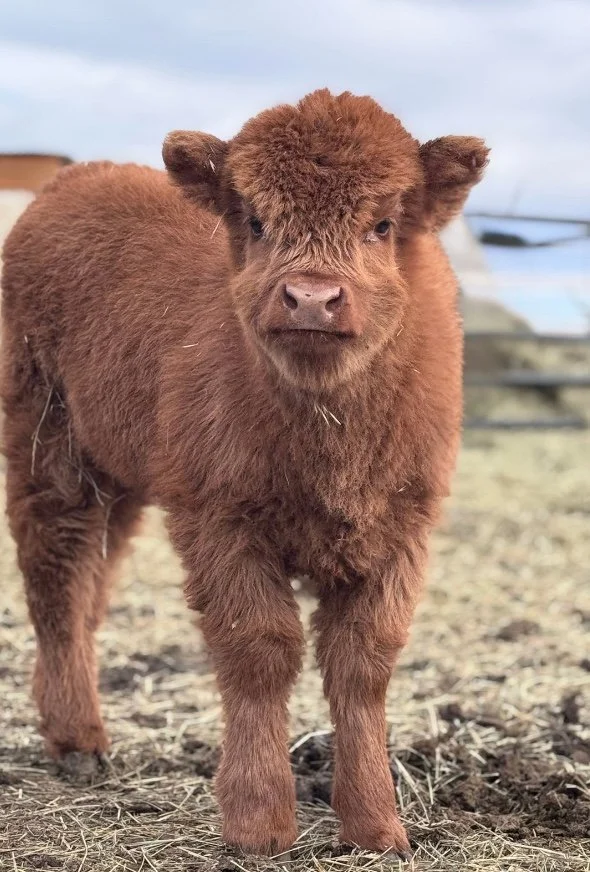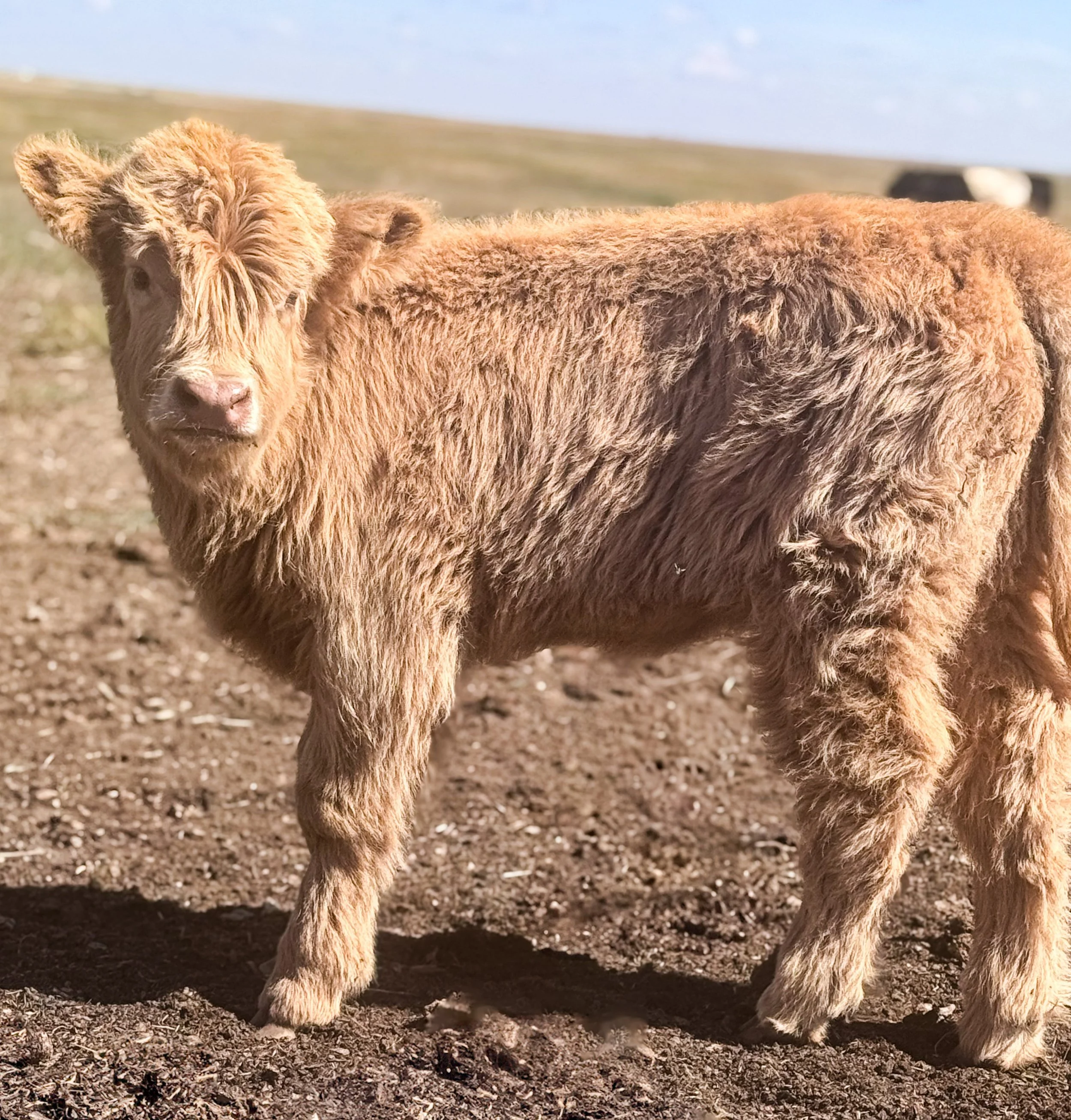 Born July 21,2025 This sweet little guy will be a midsize/mini adult. He’s got the hair and he will have the color, he is suspected brindle. 100% Highland. He will make a great herd sire or pet as a steer.