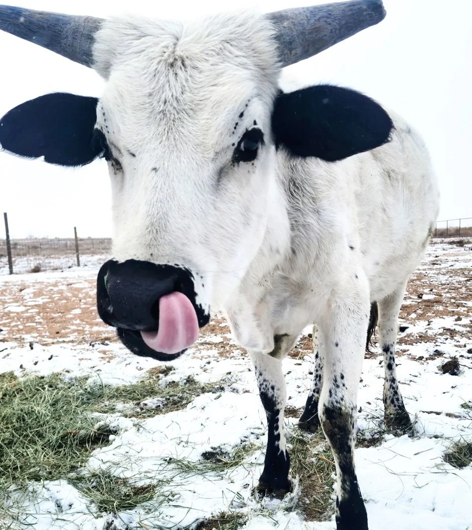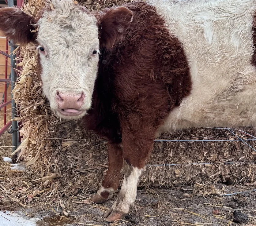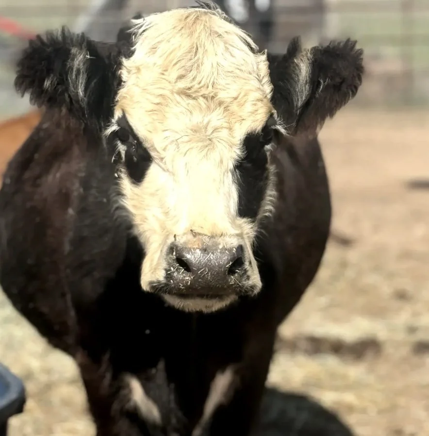 Carla the puppy dog cow! She is a 43” 3 year old Hereford/Galloway cross and the SWEETEST cow! She has the best personality, is halter trained and just all around awesome!