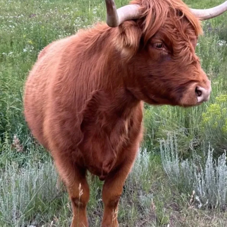 Like her name suggests she is a SWEETIE! 6yr old Red highland cow. She is mid size at 45" with a great disposition.